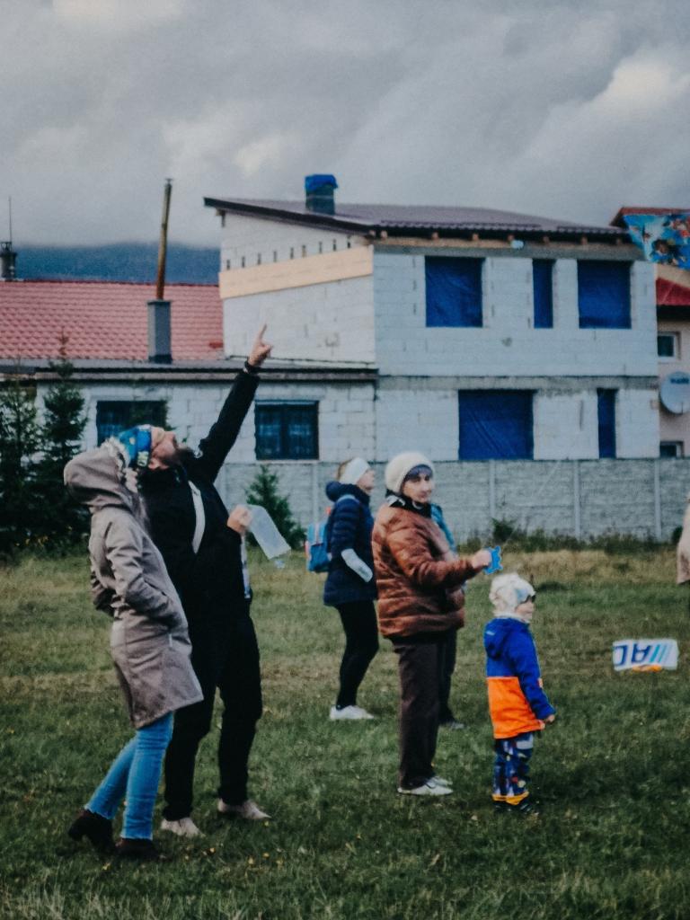 Veru sme aj slzičku dojatia videli v očiach našich starkých ... Po týchto dojímavých vyznaniach sme sa s pripravenými šarkanmi spoločne presunuli na lúku za dedinou, kde už naši hlavní hrdinovia starkí spolu s deťmi vypustili farebných kamarátov šarkanov na oblohu a veru to bol krásny pohľad! Aby nám nebola zima, zahriali sme sa pri pohybovej hre "Na šarkaníka" a pri teplom čaji, ktorý zabezpečilo Rodičovské združenie. Energiu sme doplnili fajnovými, domácimi koláčikmi.